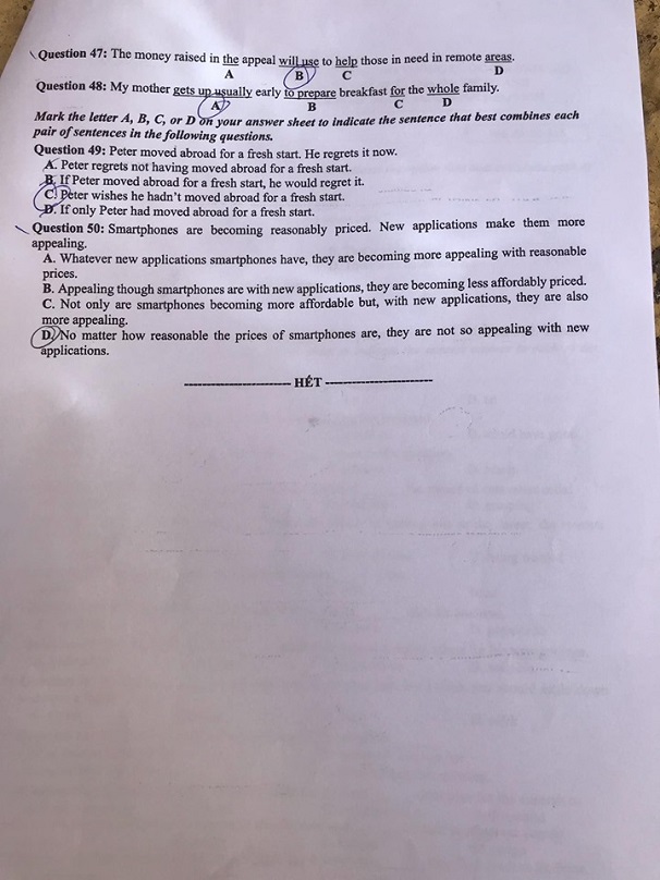 Xem đáp án gợi ý môn tiếng Anh tất cả các mã đề THPT quốc gia 2019 TẠI ĐÂY