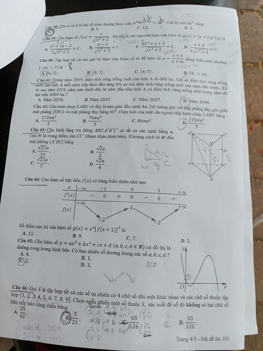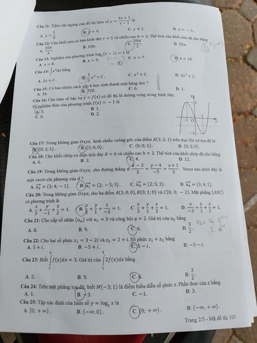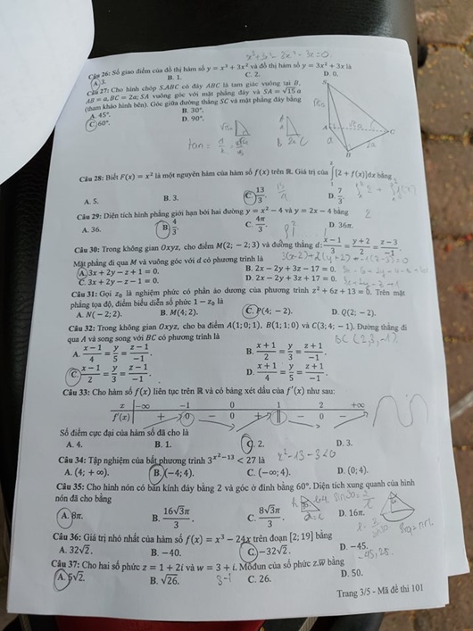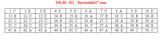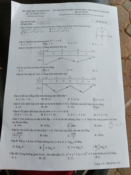 (Ấn F5 để cập nhật đáp án gợi ý môn Toán mã đề 101 tốt nghiệp THPT 2020 chuẩn nhất, chính xác nhất)