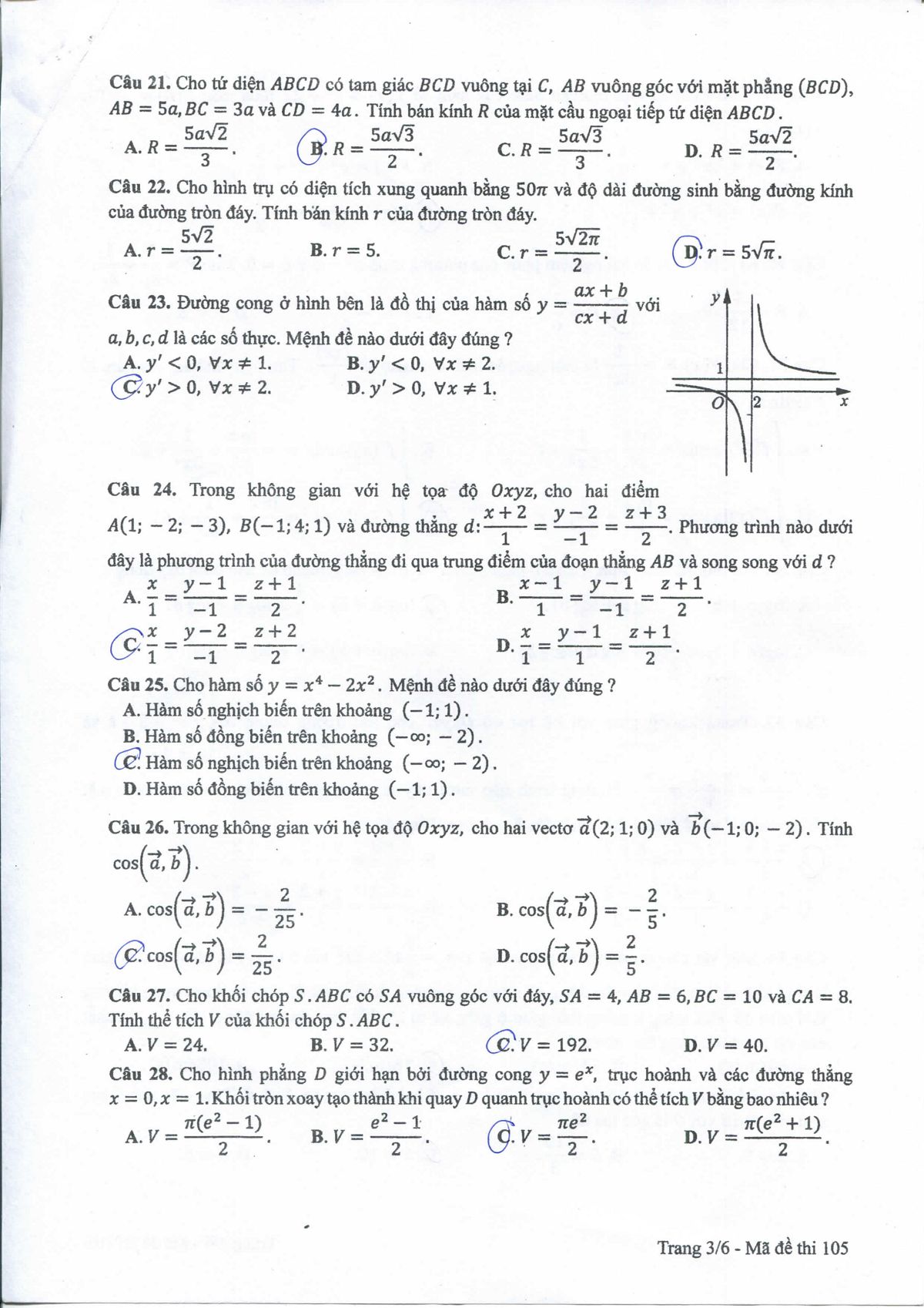Đề thi 105. - Ảnh: Hocmai |