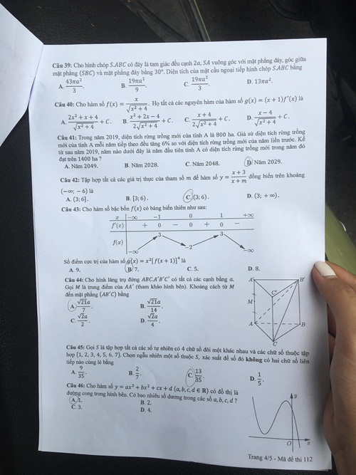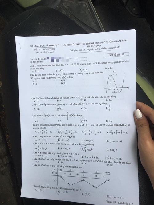 Đáp án, đề thi môn Toán mã đề 112 tốt nghiệp THPT 2020 chuẩn nhất, chính xác nhất. Cập nhật đáp án gợi ý môn Toán mã đề 112 trên tạp chí Đời sống & Pháp luật.