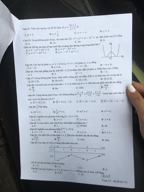 | Đề thi môn Toán mã đề 112 tốt nghiệp THPT 2020 |