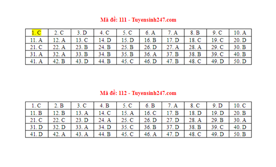 Đáp án gợi ý môn Toán mã đề 111 - Nguồn: Tuyển sinh 247 - Cập nhật lúc 18h15
