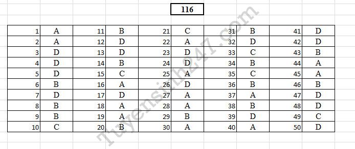 Đáp án đề thi THPT quốc gia 2017 môn Toán mã đề 116. Trang đời sống & Pháp luật sẽ cập nhật nhanh nhất đáp án chính thức môn Toán của Bộ GD-ĐT.
