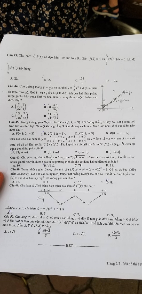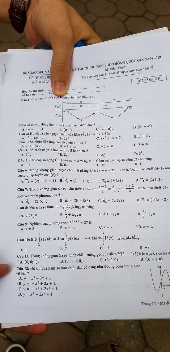 (Ấn F5 để cập nhật Đáp án, đề thi môn Toán mã đề 118 THPT quốc gia 2019 nhanh nhất, chuẩn nhất)
