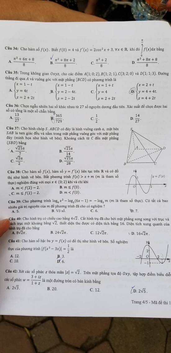Đáp án tham khảo môn Toán mã đề 118 THPT quốc gia 2019 |