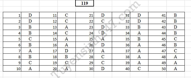 Đáp án gợi ý môn Toán mã đề 119 THPT quốc gia 2017. Nguồn: Tuyensinh247.vn |