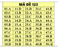 Đáp án, đề thi môn Toán mã đề 123 THPT quốc gia 2019 chuẩn nhất. Cập nhật đáp án gợi ý môn Toán mã đề 123 THPT quốc gia 2019 nhanh nhất.
