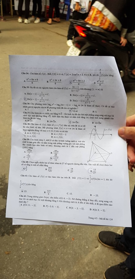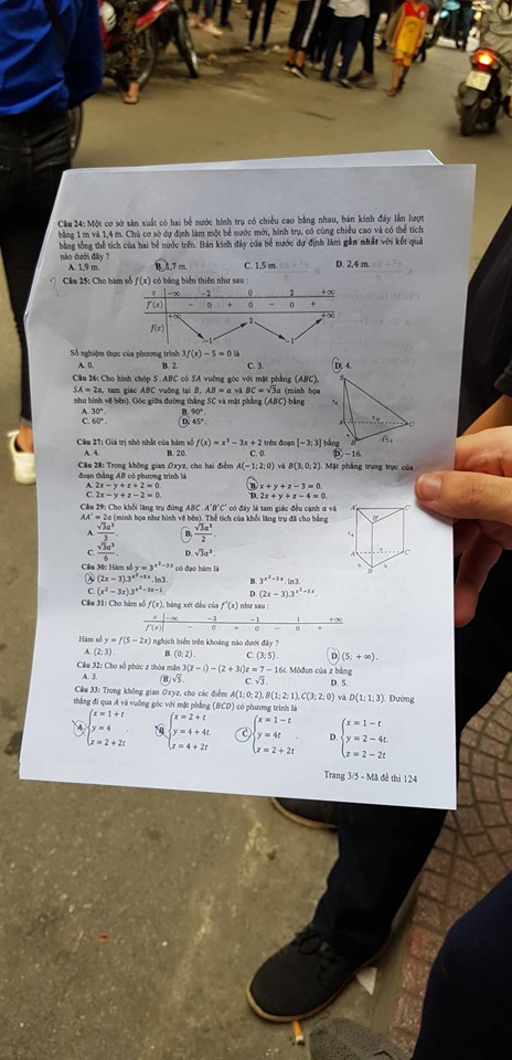 Đề thi môn Toán mã đề 124 THPT quốc gia 2019 (cập nhật lúc 17h36)
