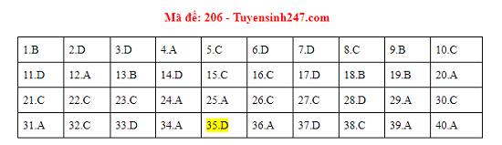 Đáp án gợi ý môn Vật lý mã đề 206 tốt nghiệp THPT 2020. Ảnh: Tuyensinh247.com |