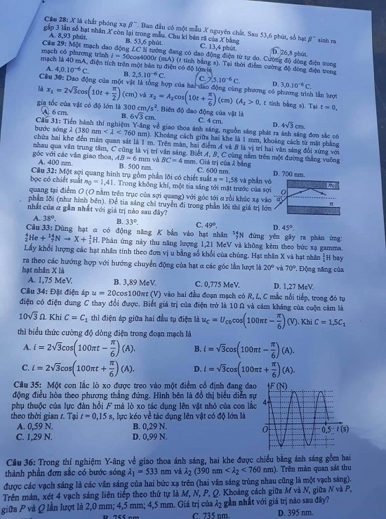 Môn Khoa học tự nhiên có tổng thời gian làm bài 150 phút (không kể thời gian phát và thu đề giữa giờ thi). Các thí sinh bắt đầu được phát đề thi môn Vật lý vào lúc 7h30, bắt đầu tính giờ từ 7h35 và kéo dài trong 50 phút.
