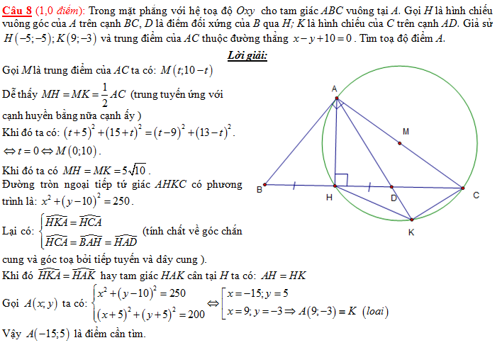 Đáp án đề thi tốt nghiệp THPT Quốc gia môn toán năm 2015