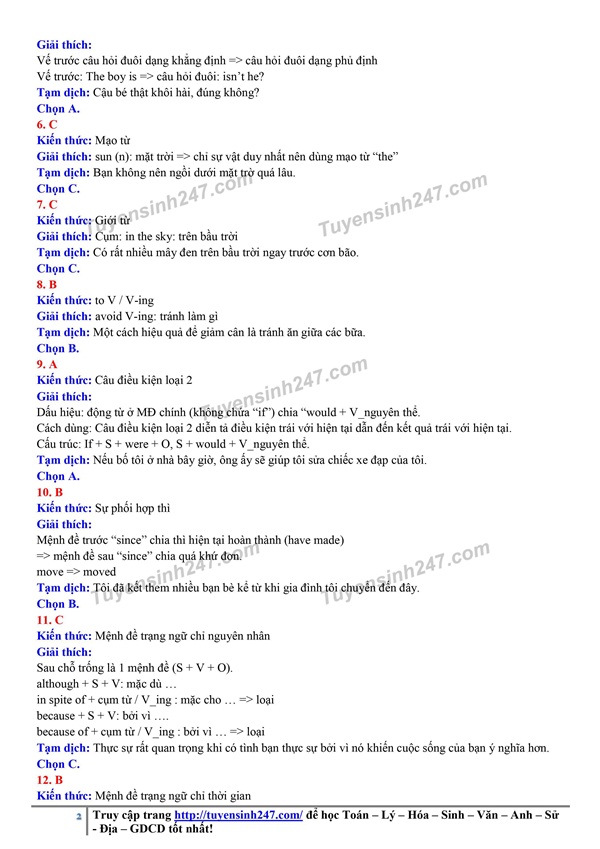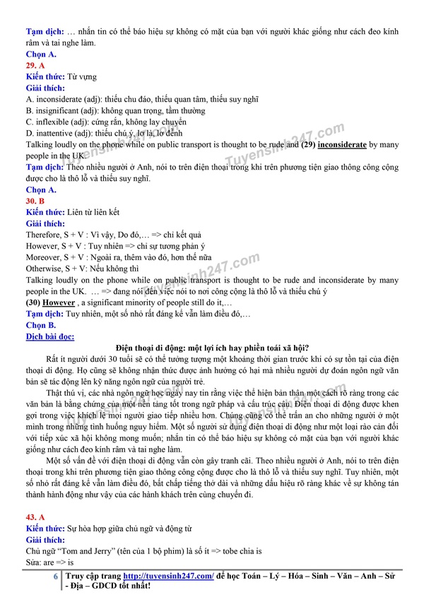 Dưới đây là gợi ý đáp án đề thi môn Anh để các học sinh tham khảo: