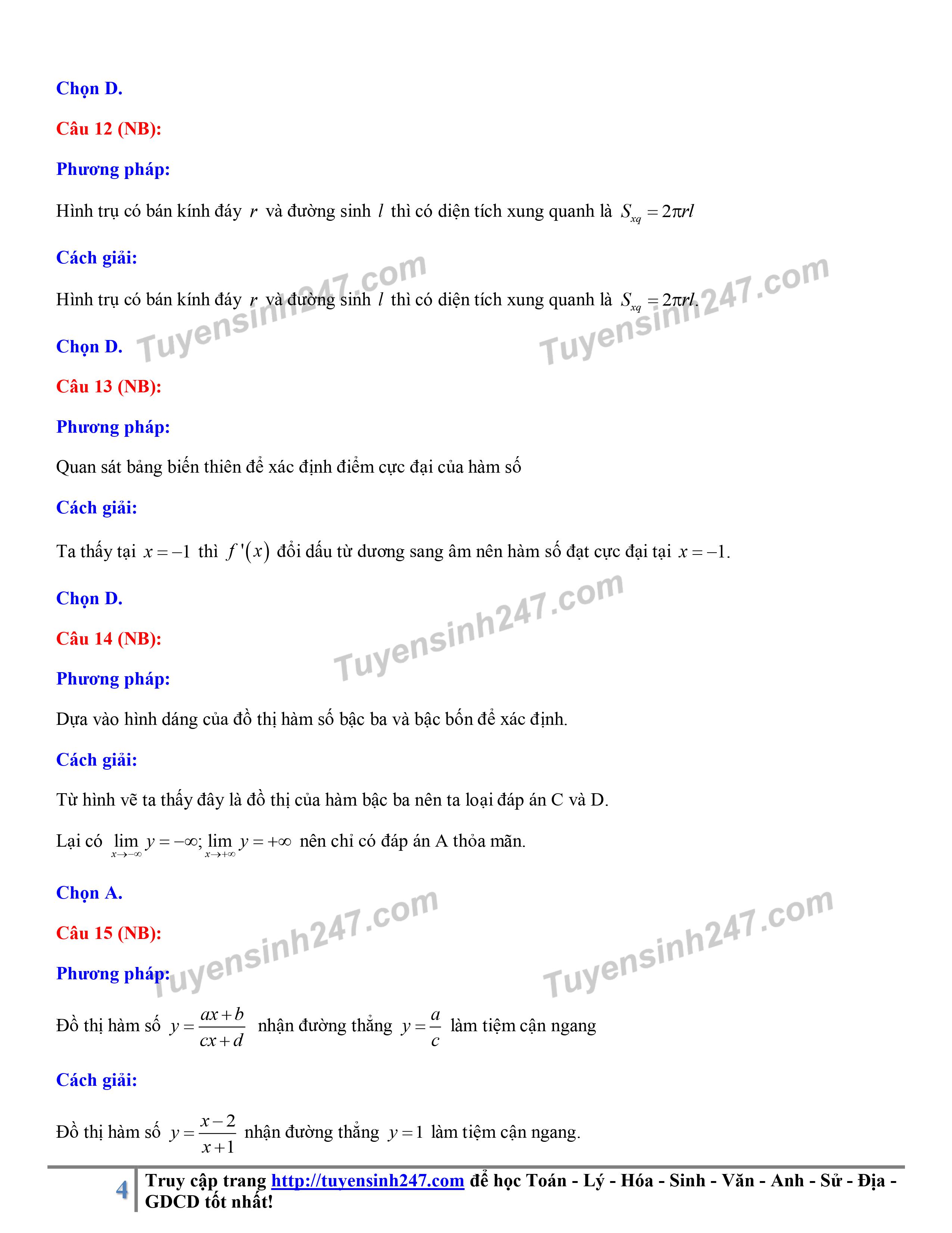 Bộ giáo dục vừa công bố đề thi tham khảo kỳ thi tốt nghiệp THPT 2020. Dưới đây là chi tiết đáp án gợi ý môn Toán.
