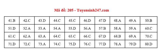 Đáp án, đề thi môn Hóa học mã đề 205 THPT quốc gia 2019