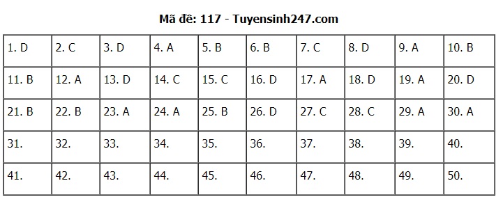 - Xem gợi ý đáp án môn Toán mã đề 117