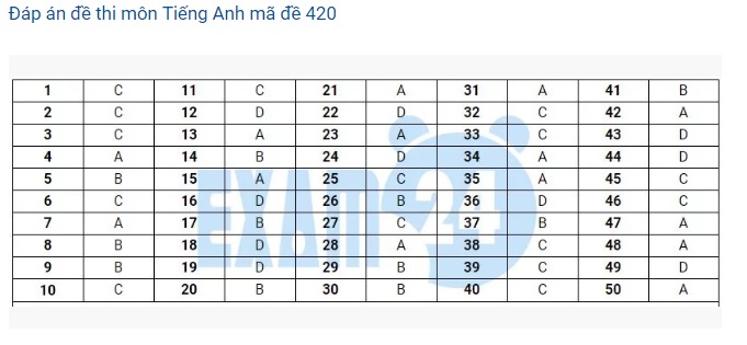 Đáp án môn tiếng Anh mã đề 420 THPT quốc gia 2019