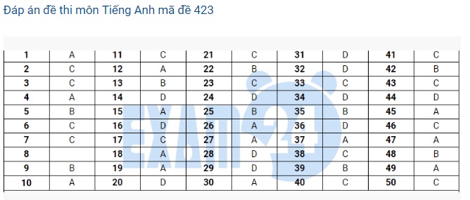 Đáp án môn tiếng Anh mã đề 423 THPT quốc gia 2019