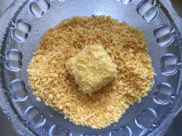 - Cuối cùng lăn qua lớp bột chiên xù. Thực hiện lần lượt cho tới khi hết đậu.