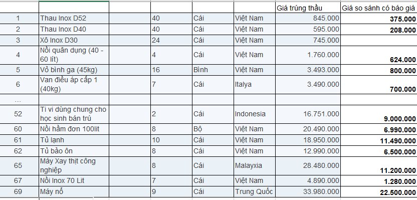 Theo tài liệu PV có được, tại “Gói thầu số 02: Mua sắm TB đồ dùng NA, NB và TB đồ dùng khu ở nội trú cho các trường PTDTBT THCS thuộc Chương trình mục tiêu GD vùng núi, vùng DTTS, vùng khó khăn trên địa bàn tỉnh TH năm 2018 và 2019”, có nhiều hạng mục “đội giá” như: Thau Inox D52 giá 845.000 đồng; van điều áp cấp 1 (40kg) giá 3.490.000 đồng (Van điều áp cùng loại trên thị trường chỉ chỉ có 700.000 đồng – giá bán lẻ); Bát con giá 35.000 đồng, đĩa đựng thức ăn 60.000 đồng; Đàn Organ Trung Quốc 25.200.000 đồng (một sản phẩm đảm bảo đầy đủ yêu cầu kỹ thuật theo Hồ sơ mời thầu giá thị trường chưa đến 2 triệu đồng),…