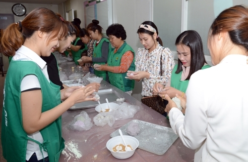 Lớp học nấu nướng dành cho các phụ nữ ngoại quốc lấy chồng Hàn Quốc chuẩn bị cho dịp lễ Trung Thu. |