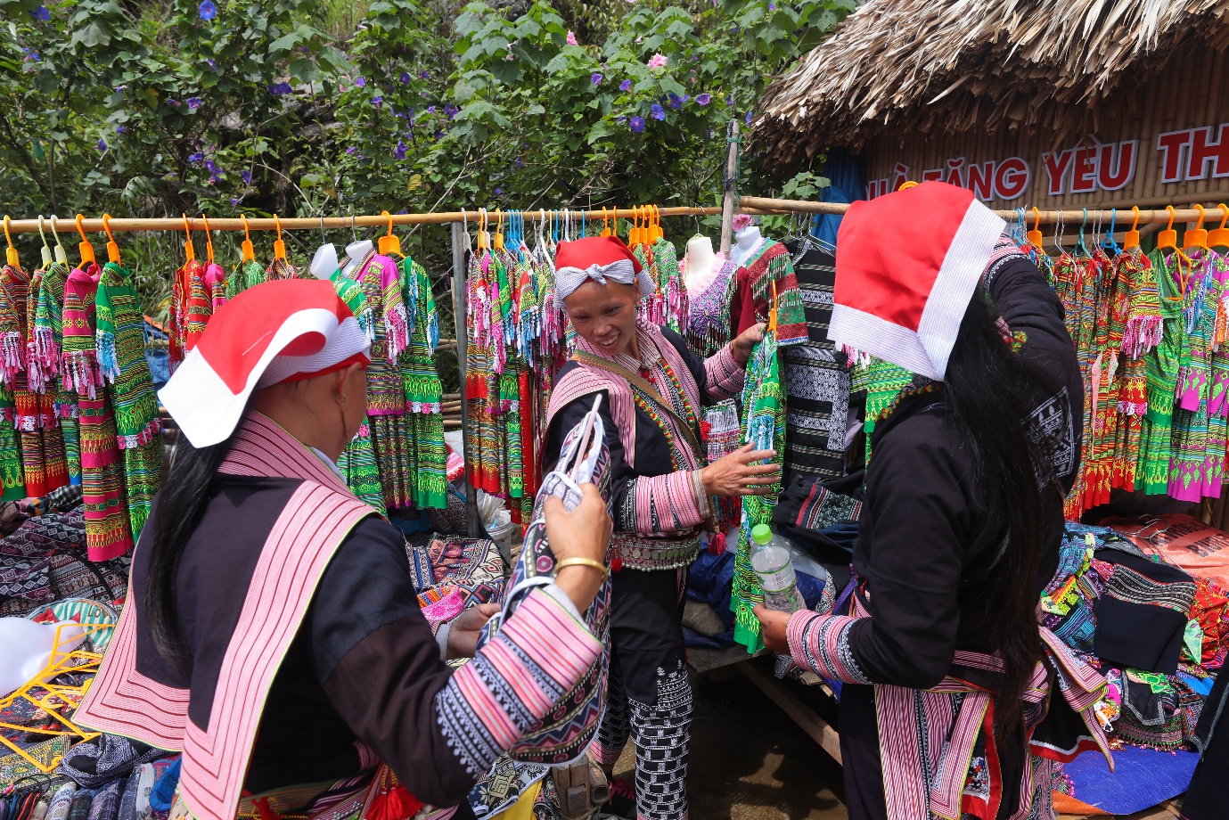 Mỗi sáng thứ 7 và chủ nhật, từ 9h30 đến 11h30, du khách sẽ thực sự hòa mình vào cuộc sống của đồng bào, trong đám cưới người Dao truyền thống, những thếp thổ cẩm đủ sắc màu và đặc sản được bà con mang tới bán trong những gian hàng lợp gỗ sa mu.