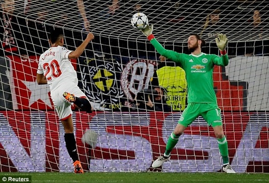 Nhờ vào sự tỏa sáng của De Gea, Manchester United đã có trận đấu vất vả để cầm hòa Sevilla trong trận lượt đi vòng 1/8 cúp C1.