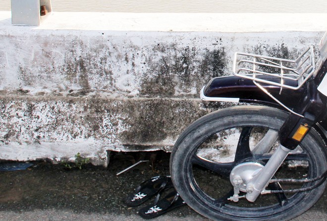 Chiếc xe máy cùng đôi dép của nạn nhân để trên cầu. (Ảnh Tri thức trực tuyến) |