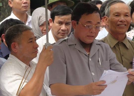 Cậu Thủy (áo xám, tay cầm giấy). |