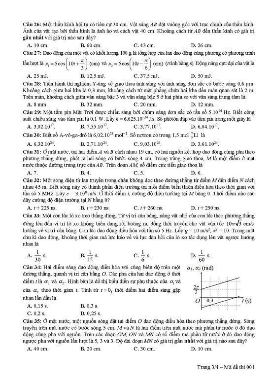 (Ấn F5 để cập nhật đáp án gợi ý môn Vật lí mã đề THPT quốc gia 2019 nhanh nhất, chuẩn nhất)