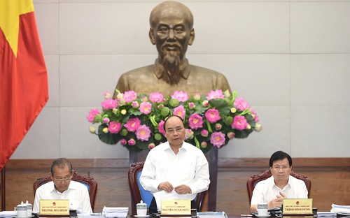 Thủ tướng Nguyễn Xuân Phúc chủ trì phiên họp về chuyên đề xây dựng pháp luật của Chính phủ. Ảnh: VGP |