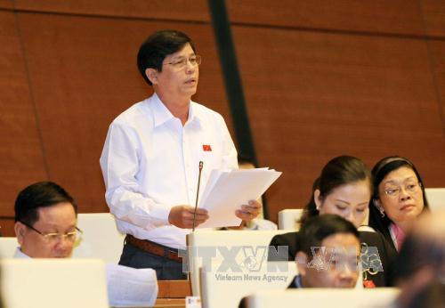 Ðại biểu Quốc hội tỉnh Khánh Hòa Nguyễn Tấn Tuân phát biểu ý kiến. Ảnh: Doãn Tấn - TTXVN |
