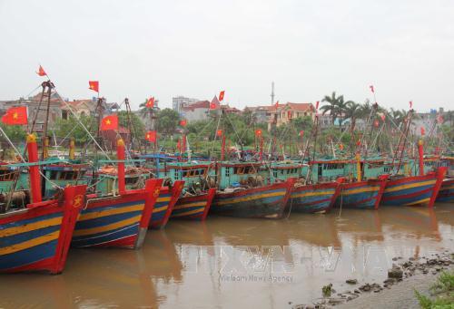 Tàu thuyền của ngư dân huyện Thái Thụy tránh trú bão tại bến neo đậu, tránh trú bão trên địa bàn thị trấn Diêm Điền. Ảnh: Xuân Tiến-TTXVN. |