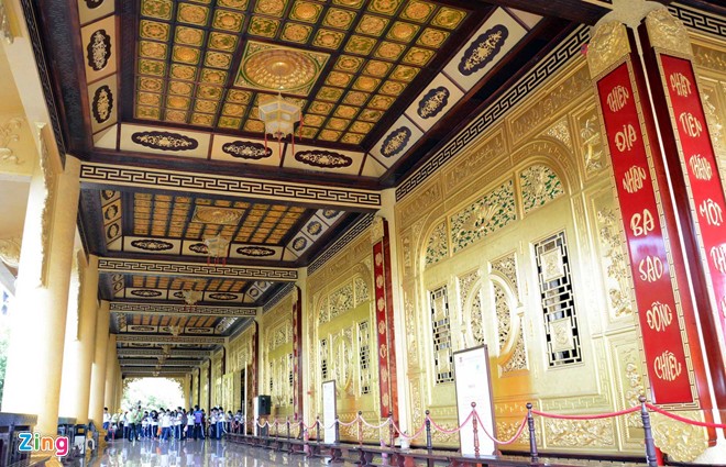 Các công trình đền đài trước chính điện được xây dựng hoành tráng, công phu và tỉ mỉ. |