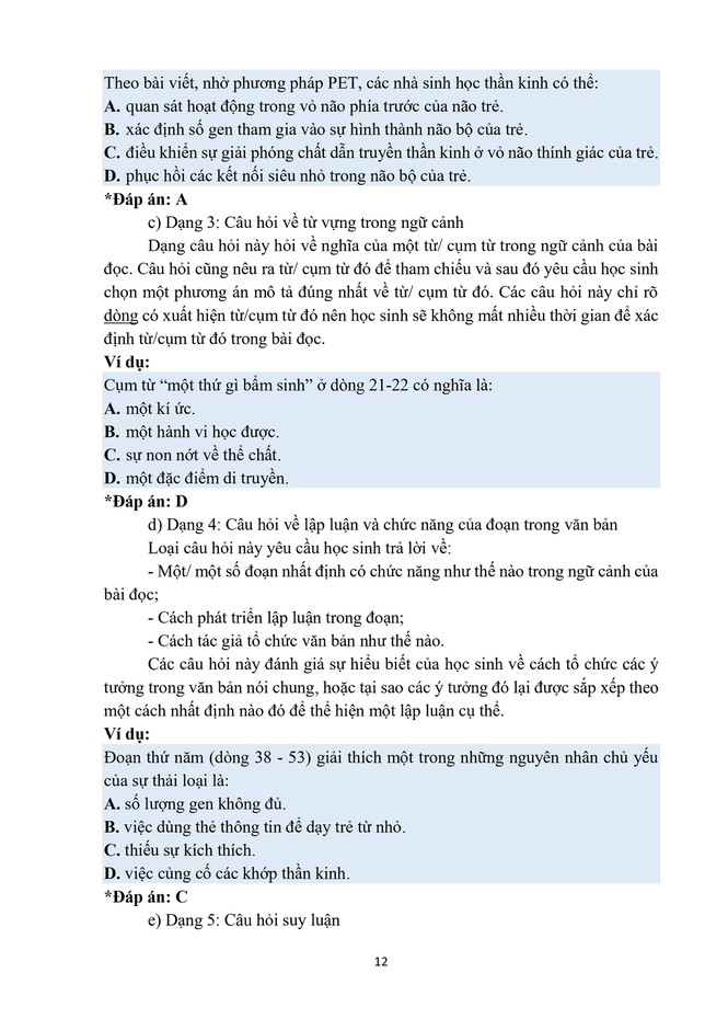 Về phần Đọc hiểu, nội dung trong đề thi đa dạng, phong phú, chủ yếu liên quan tới chủ đề về khoa học tự nhiên, kỹ thuật và công nghệ. Phần thi tập trung đánh giá kỹ năng đọc cùng với năng lực phân tích, lý giải văn bản, khái quát, tổng hợp, biện luận về logic và suy luận từ văn bản. Đọc hiểu được coi là một trong những năng lực cốt lõi, cần thiết cho việc tự học và học tập suốt đời.