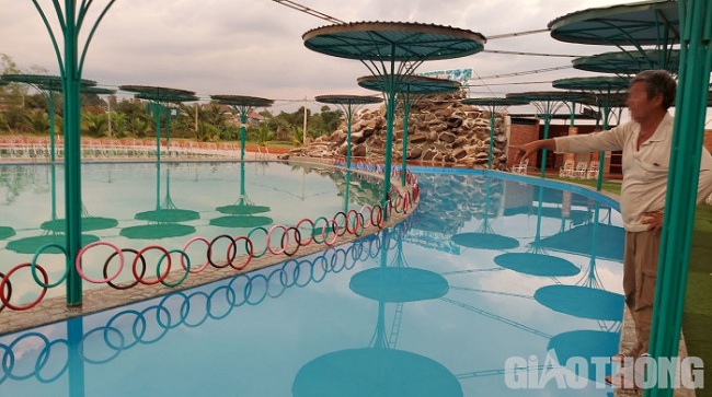 Khu vực hồ bơi trên được xây dựng trên diện tích đất trồng lúa nước, thiết kế gồm 3 phần, cạnh nhà hàng ăn uống.