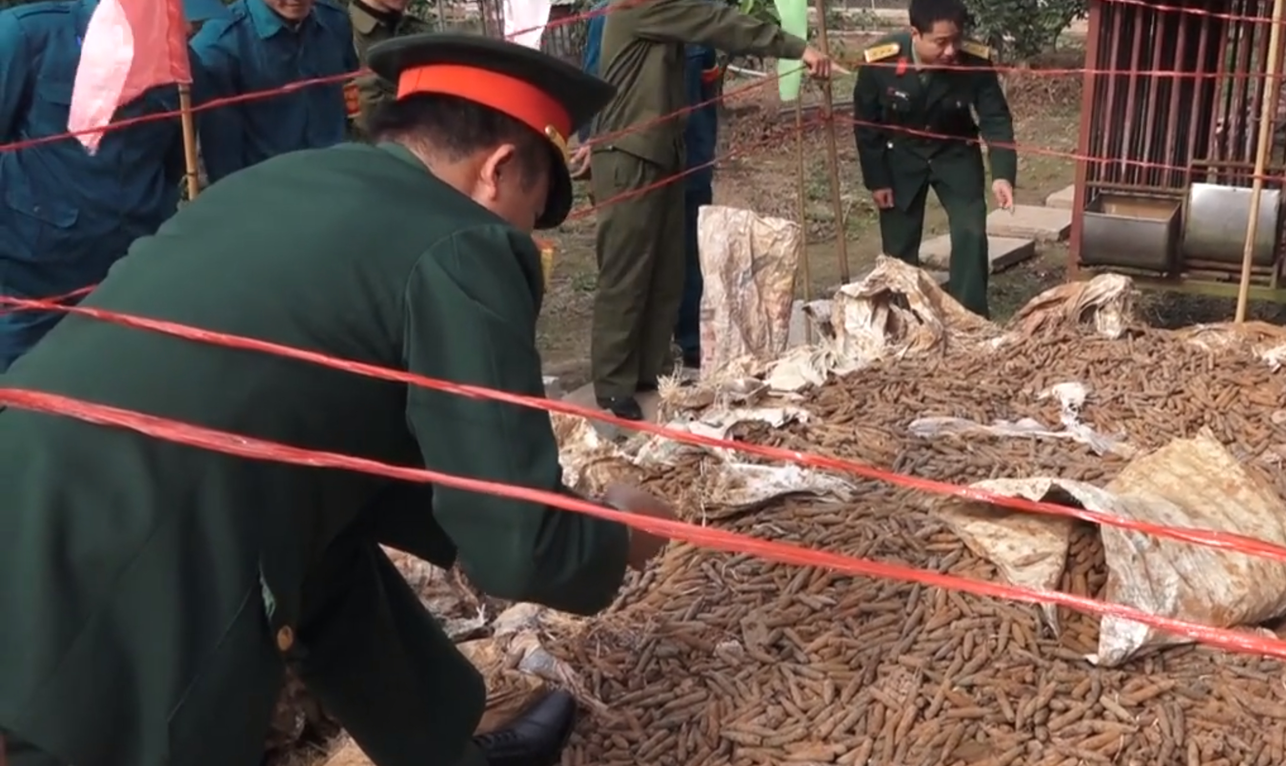 Chiều 12/1, trao đổi trên báo chí, ông Phan Văn Đạt - Chủ tịch UBND xã Dân Tiến (huyện Khoái Châu, Hưng Yên), cho biết: Sáng cùng ngày, Bộ chỉ huy quân sự tỉnh đã cử người đến thu gom toàn bộ số đầu đạn bên trong vườn nhà của một hộ dân trên địa bàn xã.