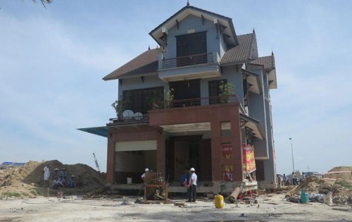 Biệt thự mới xây dựng cách đây hơn một năm, trị giá khoảng 4 tỷ đồng, khang trang, chắc chắn, nên chủ ngôi nhà tính phương án di dời để tiết kiệm chi phí.