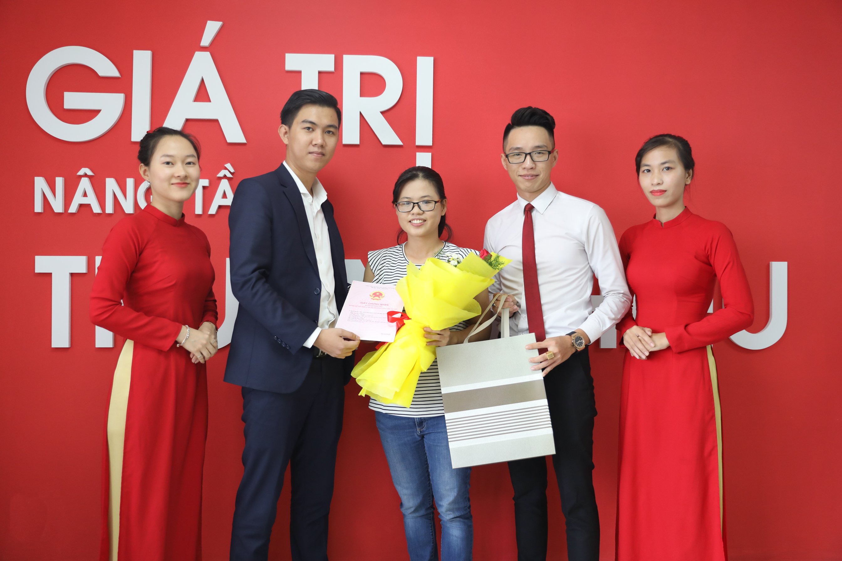 Đại diện Công ty Địa ốc Đất Việt trao sổ trước thời hạn cho khách hàng |