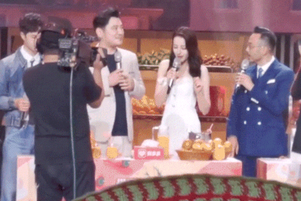 Người đẹp "Chẩm thượng thư" sững người bối rối trước sự xuất hiện bất ngờ của fan nam này. May mắn là MC Uông Hàm đã phản ứng rất nhanh nhạy, cầm lấy tay của người đàn ông kia để ngăn việc Địch Lệ Nhiệt Ba bị động chạm.