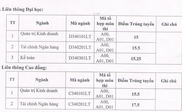 Điểm trúng tuyển của hệ liên thông đại học, cao đẳng |