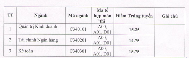 Hội đồng tuyển sinh của trường cũng cho biết, điểm trúng tuyển ở trên dành cho học sinh phổ thông, khu vực 3. Đối với mỗi khu vực ưu tiên và đối tượng ưu tiên, điểm trúng tuyển cũng được áp dụng mức điểm ưu tiên theo quy định hiện hành. Chênh lệch điểm trúng tuyển giữa các nhóm đối tượng là 1 điểm và giữa hai khu vực là 0,5 điểm.