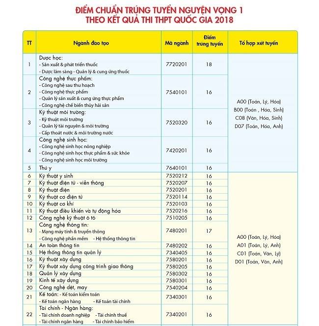 Hội đồng tuyển sinh hệ đại học chính quy của Đại học Công nghệ TP.HCM chính thức công bố điểm chuẩn năm 2018.