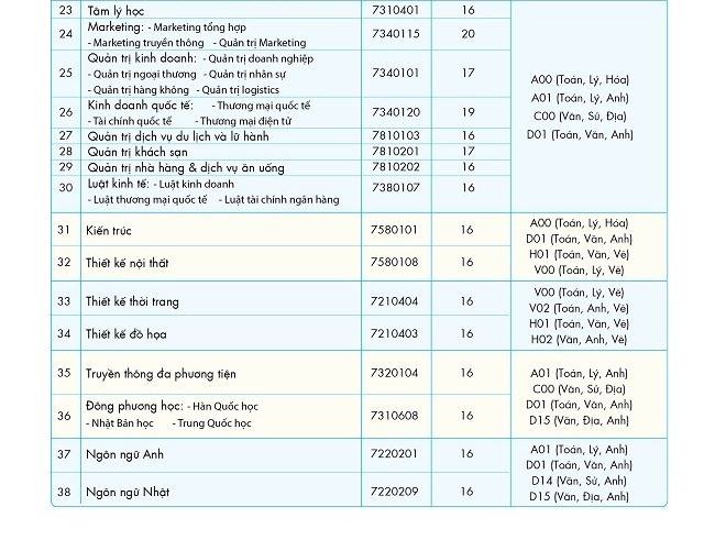 Điểm chuẩn cụ thể các ngành của Đại học Công nghệ TP.HCM. - Ảnh: Zing.vn |