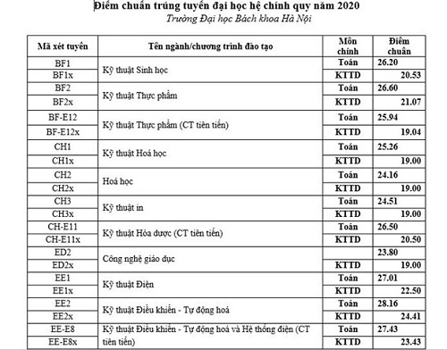 Dưới đây là điểm chuẩn chính thức của các ngành đã được đại học Bách khoa công bố: