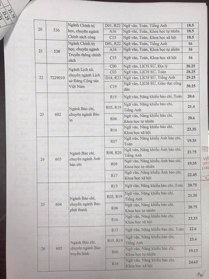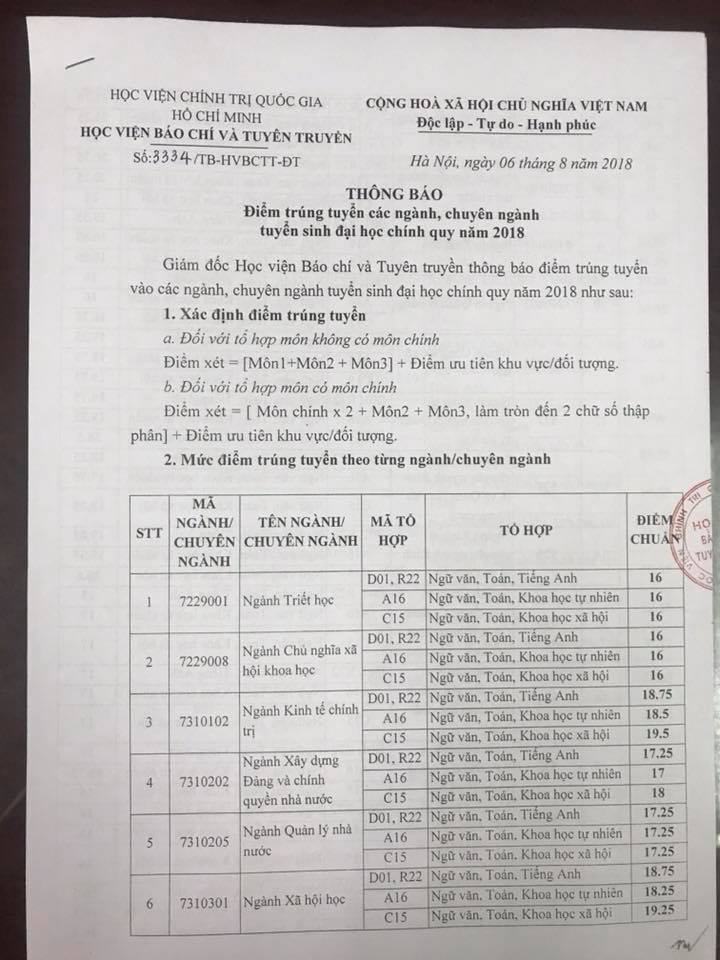 Điểm chuẩn Học viện Báo chí Tuyên truyền năm 2018. Cập nhật điểm chuẩn Học viện Báo chí Tuyên truyền chính thức trúng tuyển vào các ngành năm 2018.
