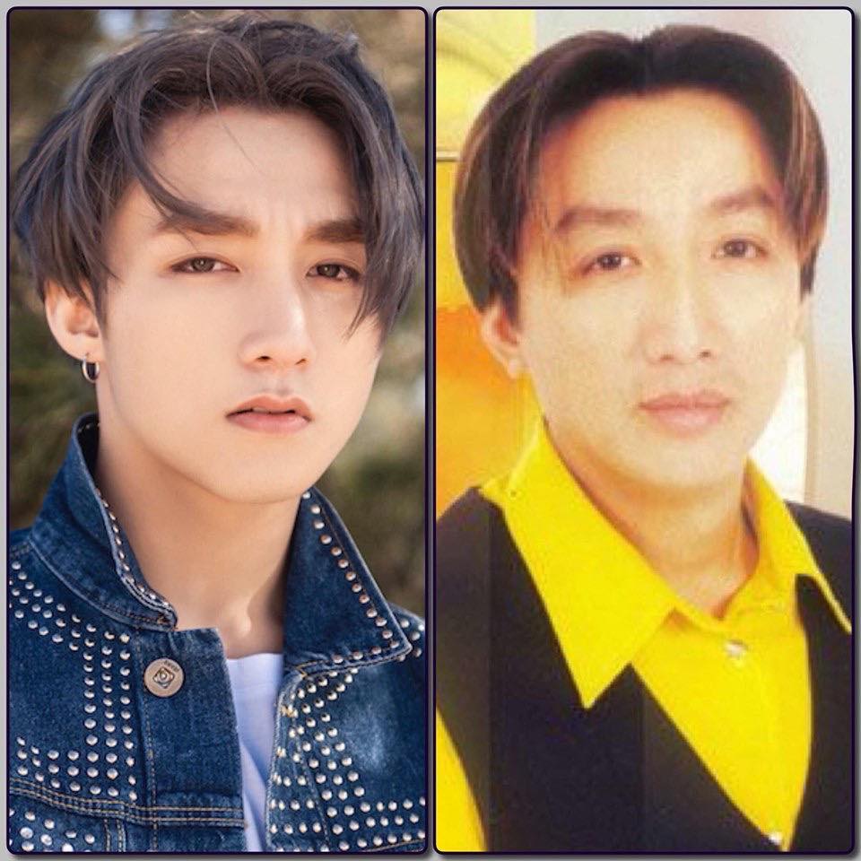 Với mái tóc ngôi giữa huyền thoại, Trường Vũ và Sơn Tùng cũng lọt vào tầm ngắm của Trấn Thành. |