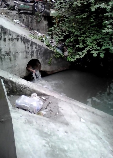 “Cô gái có biểu hiện giống như 'ngáo đá", sau khi lấy nước thải tưới lên người cô này bất ngờ lấy gạch đập vào đầu rồi chui vào ống cống nước thải rộng khoảng 80cm nằm ngủ”, anh Quân - người dân sống ở đây kể.