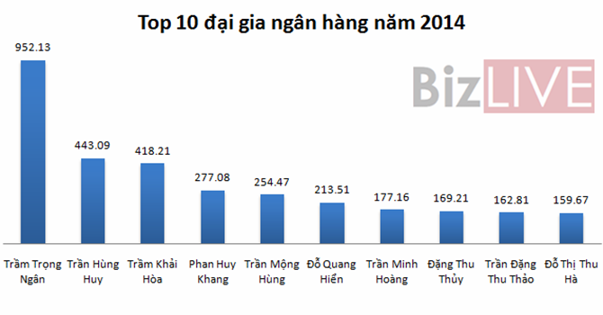 Top 10 đại gia ngân hàng trên sàn chứng khoán 2014. (Ảnh: Vietnamnet). |