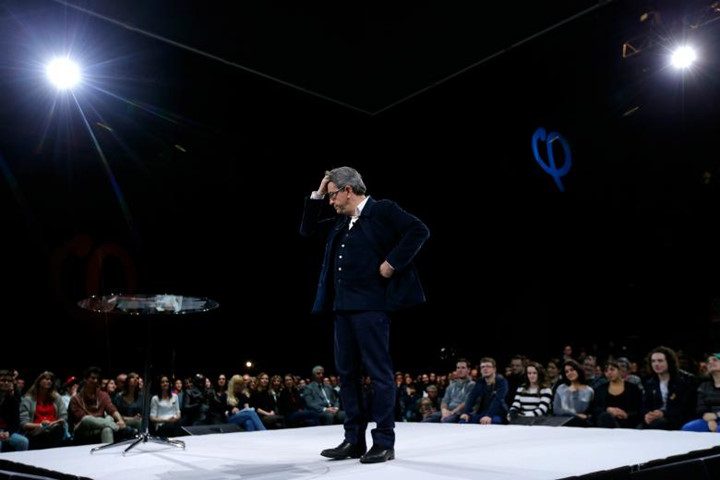 Ứng viên Jean-Luc Melenchon của đảng cánh tả Parti de Gauche tại bục diễn thuyết ở Rennes |