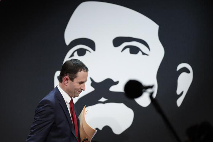 Benoit Hamon, ứng viên của đảng Xã hội Pháp, dự một cuộc họp về tình trạng nhà cửa tồi tàn gần Paris |